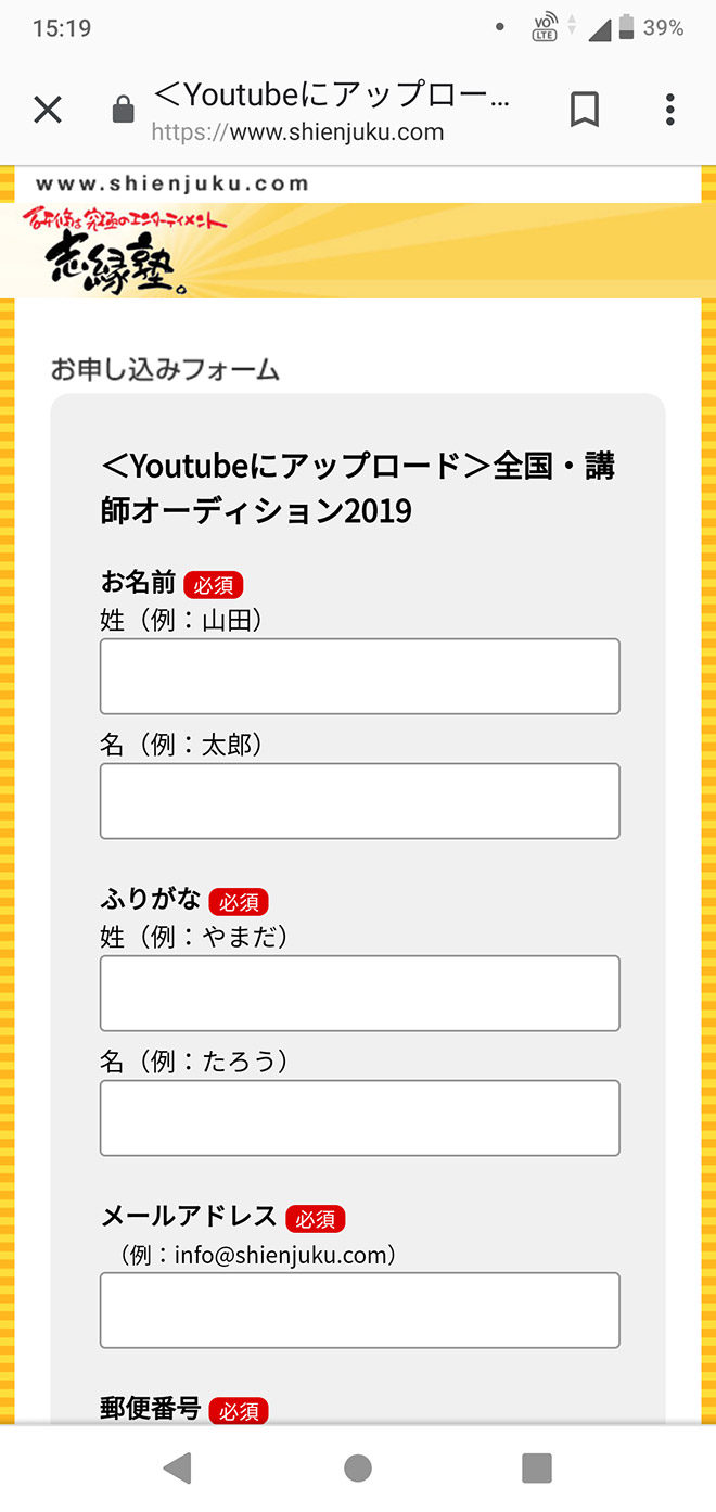 a.ブラウザで「全国・講師オーディション」と検索して、矢印の「エントリーの仕方」をタップします。